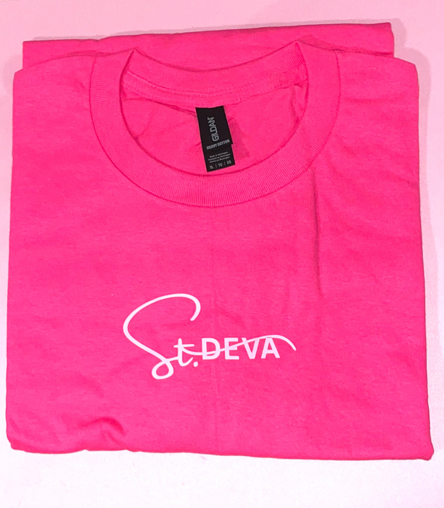 Step into faith and style with the St. DEVA Signature Tee. Designed in a soft, feminine pink, this shirt is more than fashion—it’s a declaration. Featuring “St. DEVA” in elegant script with a bold accent line, it represents strength, grace, and devotion woven together.
